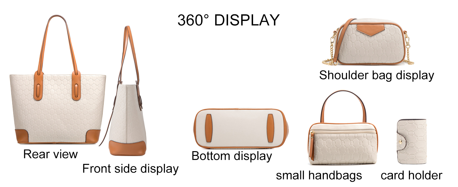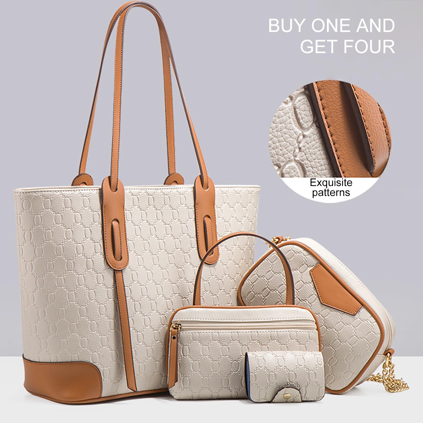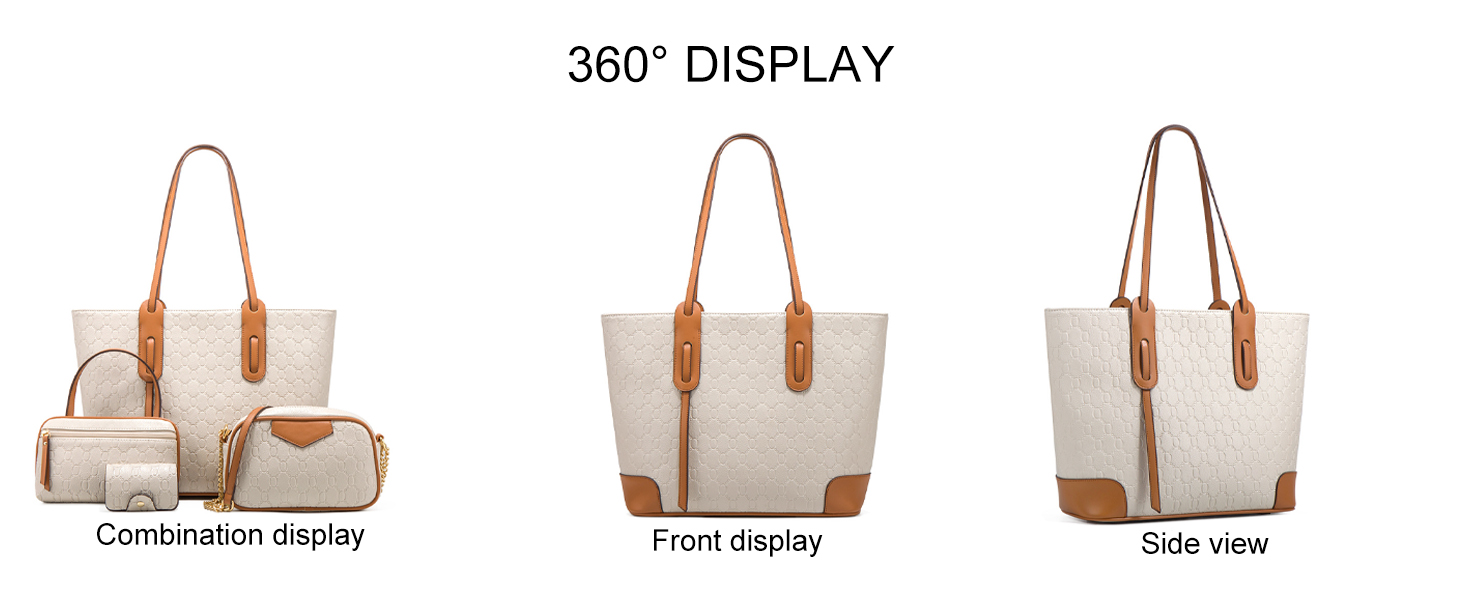 VN-B14Women’s 4-Piece Tote Bag Set – Vintage Monogram Pattern, PU Leather, Large & Stylish