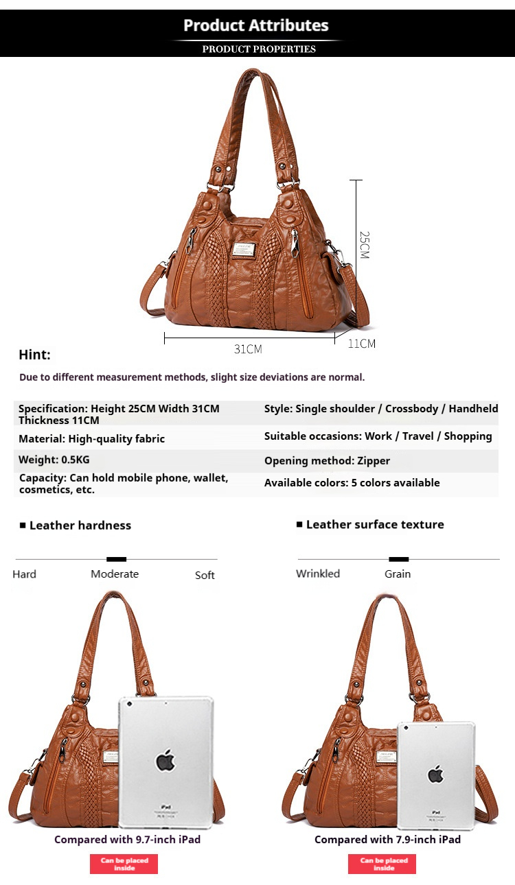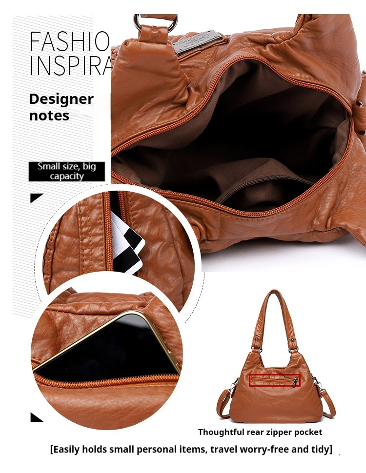 VN-B15Trendy Washed Leather Bag – Stylish, Versatile & Effortlessly Chic