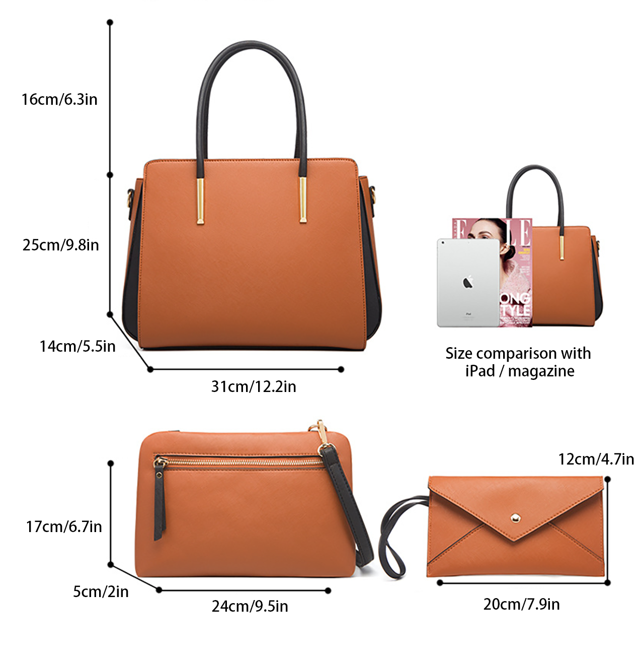 Capacity: Fits phone, cosmetics, wallet, umbrella, iPad, and more