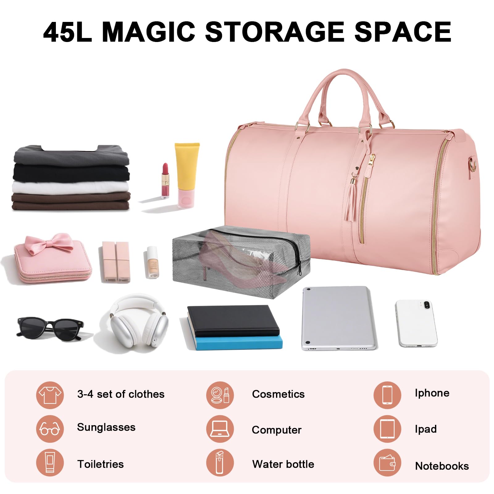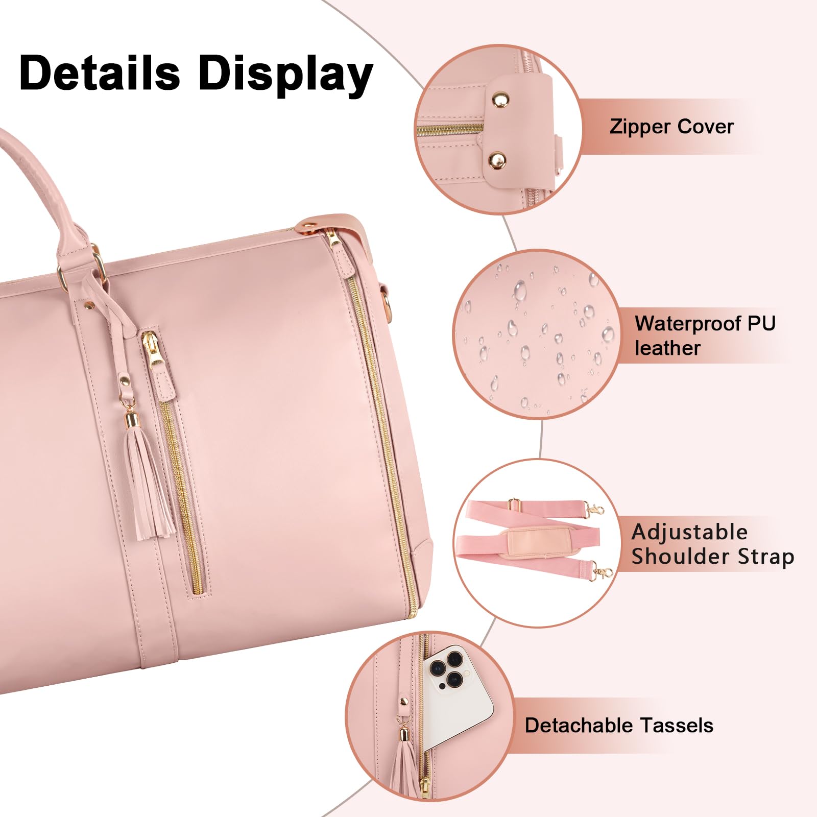 Lay it flat to use as a hanging garment bag or zip it up into a stylish duffle. Made from durable PU leather with non-slip zippers for smooth, secure use every time.